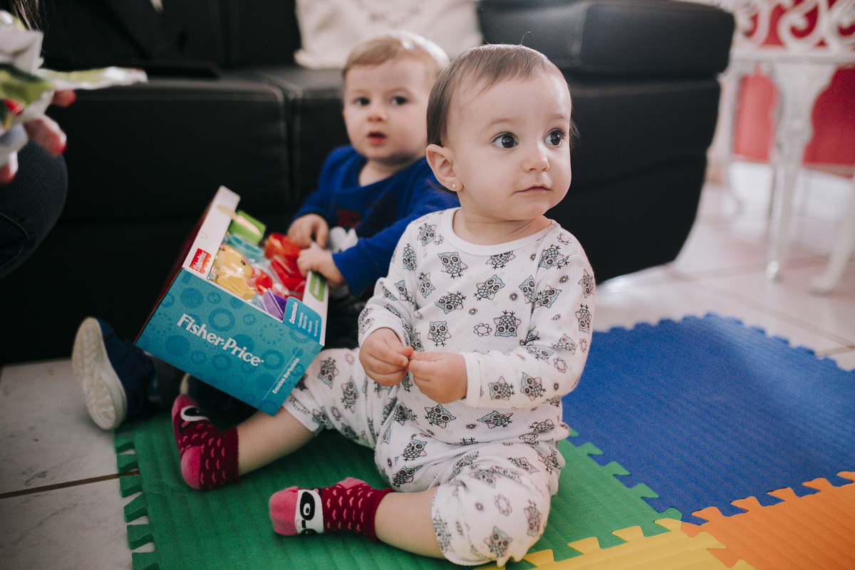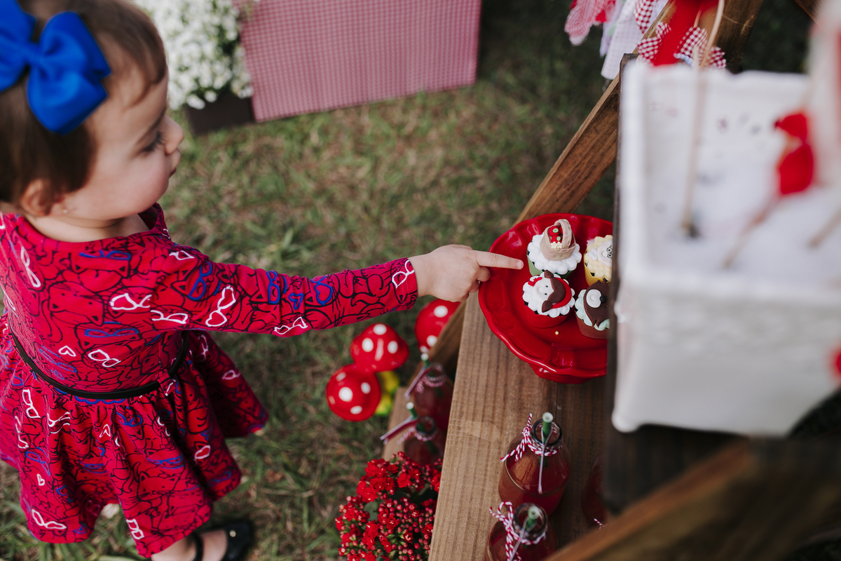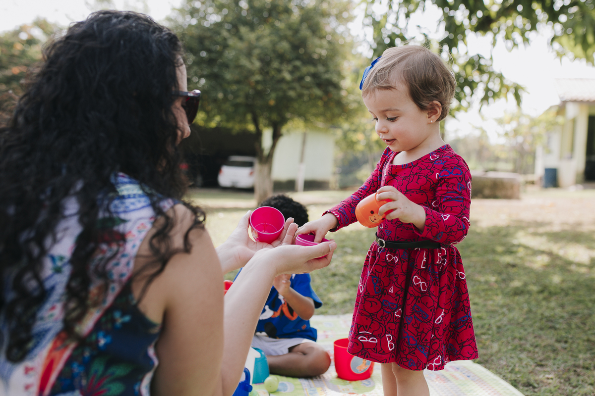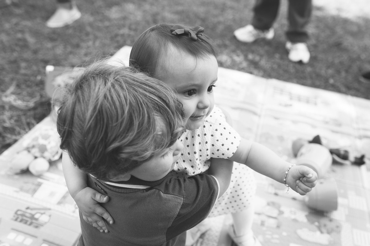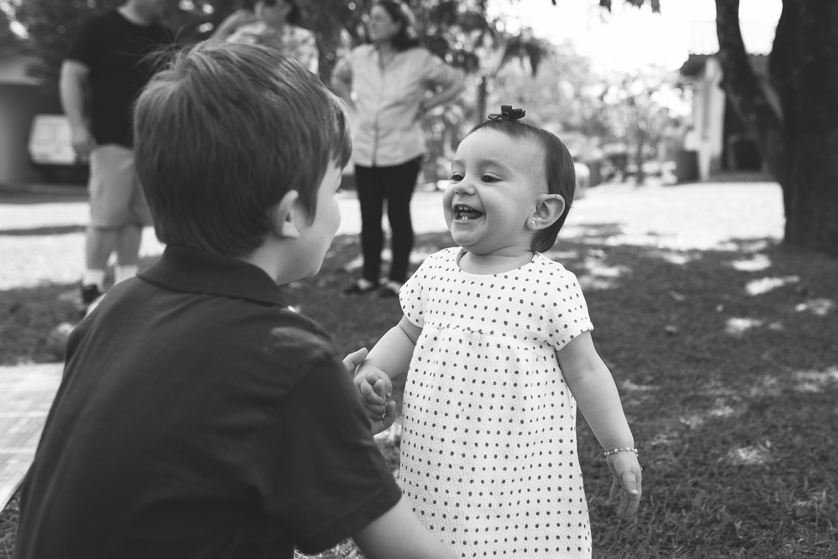 O dia estava lindo e ela aprendeu a andar poucos dias antes da festinha! Foi muito emocionante ver ela dando seus primeiros passinhos e fazendo a maior farra com os primos e amiguinhos.